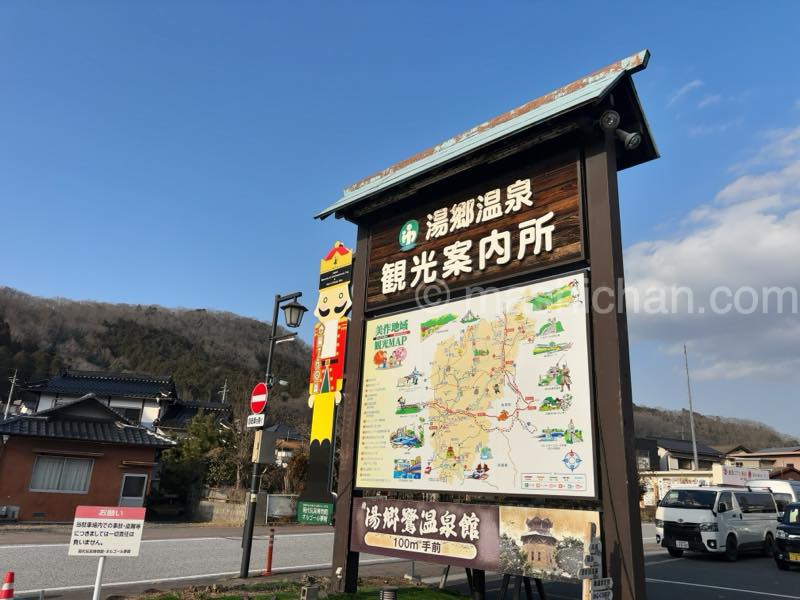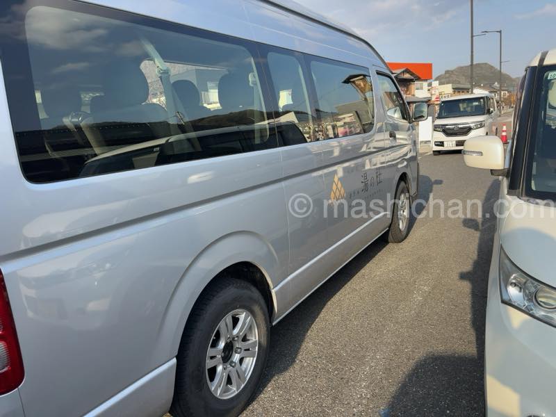 湯郷温泉の観光案内所に到着後、別の車に乗り換え、個別のホテルに移動します。