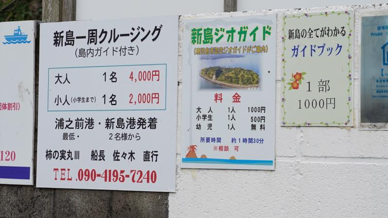• 15:05 浦之前港 発 – 15:14 新島港 着 (その他の出発時刻:08:15、10:10)