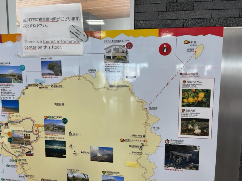 フェリー乗り場の案内だと、桜島側(浦之前港)と新島の位置は下記となります。