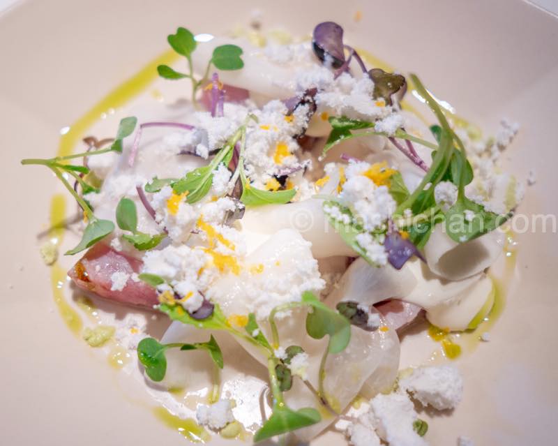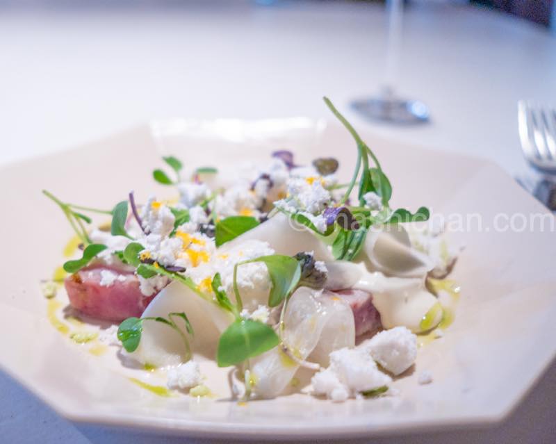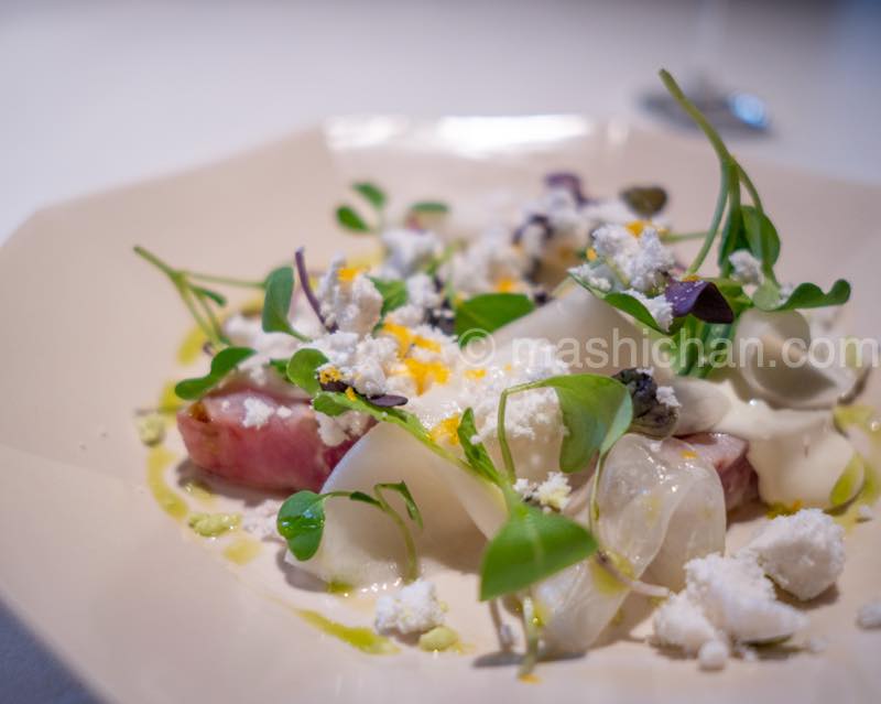 軽く火を入れた鰤が香り良くクリームチーズとの相性が良く、爽やかな一皿でした。