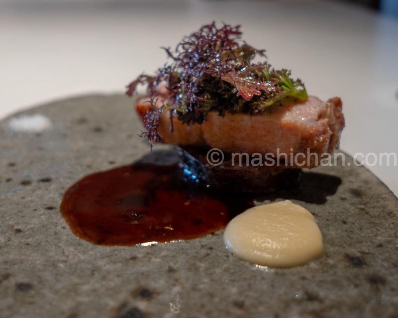 りんごのペースト、お肉の出汁、赤ワイン、ビネガーのソース。