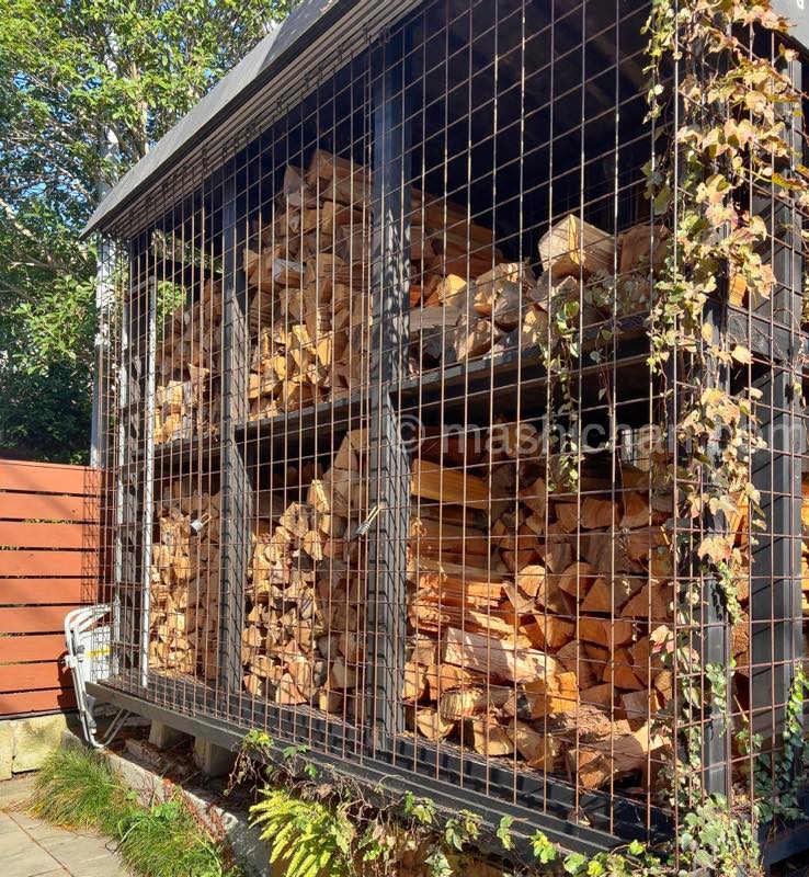 お店外には沢山の薪が置かれています。