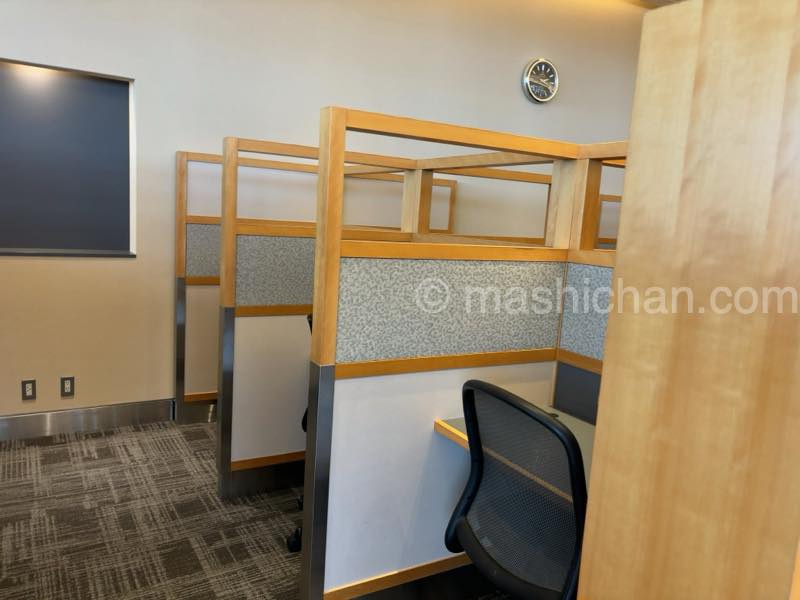 シャワールームの他、このような個人ブースもあり、仕事ができるスペースもございます。