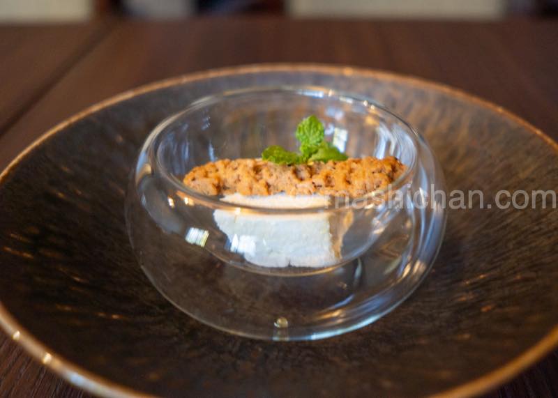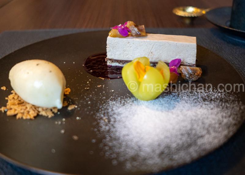 洋梨のソルベにはカンポジアペッパーをのせて。