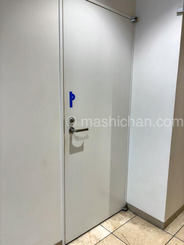 写真の中央ガラスのスライドドアから入って、すぐ左にある白い扉、扉に「P』と書かれているのがお店の入り口になります。