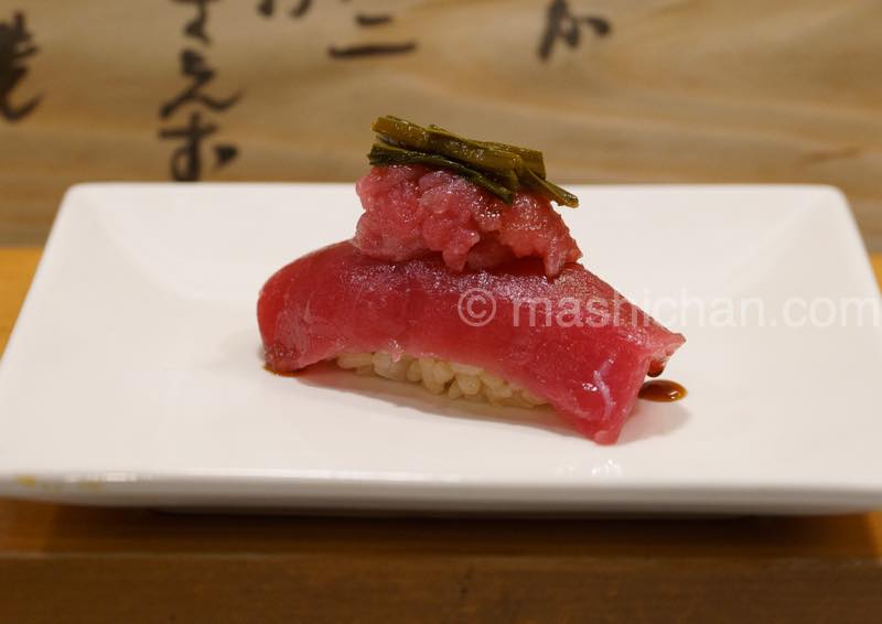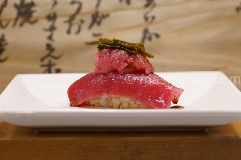 赤身(インド鮪) 〜刻んだ鮪の中落ち、行者ニンニク