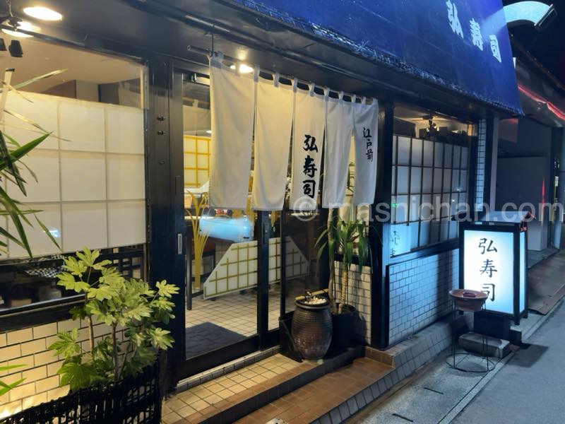 駅から川を渡っていくとどんどん街灯りが消えていき、 こんな所に!?というエリアにポツっとあるお店ですが、人気のお寿司やさんです。