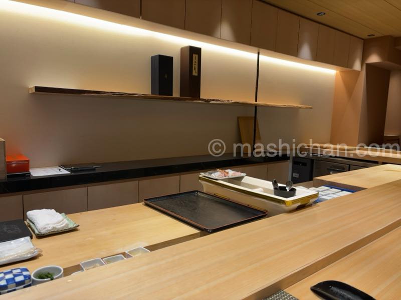 落ち着いた白木のカウンター席でお食事を楽しみました。