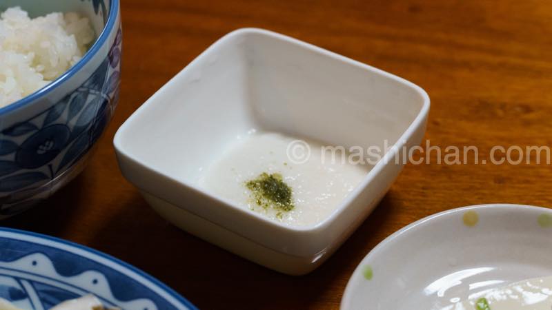 牛タンとお漬物、冷奴、とろろ、テールスープ で1セット。